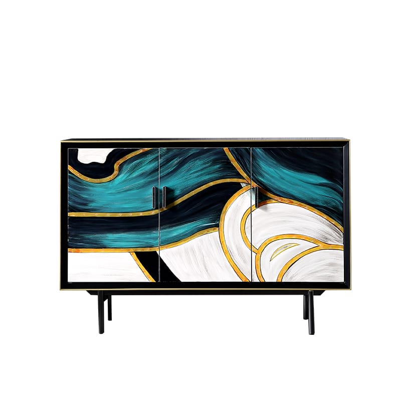 Because each stroke is applied by hand, no two sideboards are identical; every piece carries the unique touch of its creator. This individuality ensures your sideboard is not just furniture, but a one-of-a-kind artwork. The abstract cloud motif is deliberate, too: it introduces movement and airiness to the design, balancing the cabinet’s structural solidity with visual lightness. Teal hues lend a calming, natural vibe, while gold accents add subtle opulence—hallmarks of “light luxury,” which prioritizes understated elegance over overt grandeur.